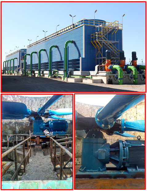 冷卻塔是采用大型工業冷卻塔,體量龐大。整個工業冷卻塔動力系統由我公司負責改造!